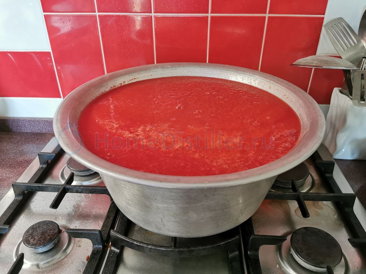 А можно сделать еще проще! Мне лень варить все помидоры целиком, а потом еще протирать через сито... Я сразу кручу на соковыжималке (типа "струмок"), потом процеживаю через сито + один слой марли. "воду" которая сливается, перекипячиваю и закатываю по бутылкам ( получается вкусный "магазинный" сок), а гущу провариваю+ все специи, от SpankyHam, что указаны в первом посте и все! прокипятила.. крахмал добавлять не надо, стоит замечательно даже вне холодильника и подвала. P.S. Можно конечно и уваривать, но очень душно и парко получается на кухне/ ИМХО.