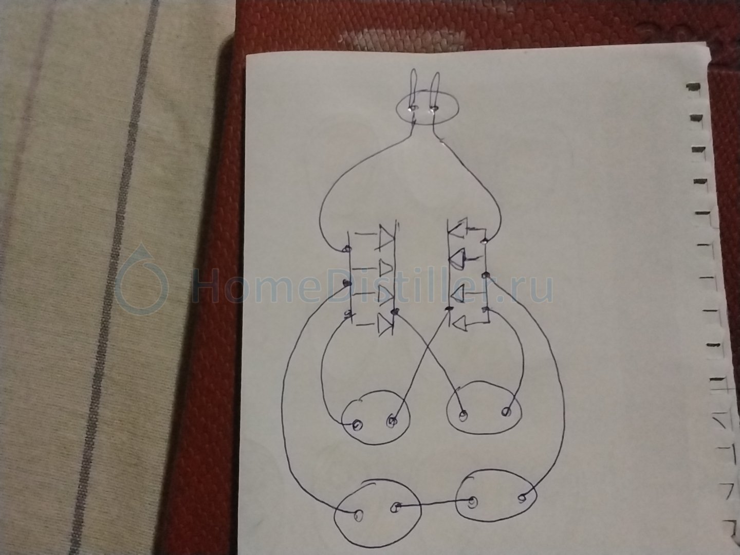 Два диода из моста задействовать? А ну если так... можно получается. Где ж вы раньше были со своими советами, когда я спрашивал какие диоды купить... Щас уже не буду переделывать. Диоды уже есть, а мост или искать или две недели ждать, и так задержался на даче, уже ноябрь будет...