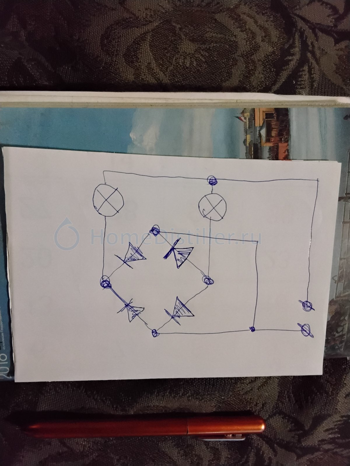 Где вы только это г...вно находите? Купи мост типа KBPS на напряжение от 500В и ток ампер 25 и используй оттуда сколько тебе надо диодов. На радиатор становится идеально.santax1, 17 Окт. 25, 07:02Бля... Дак из моста все четыре диода задействовать как два пальца! У меня то все уже готово, переделывать не буду пока не сломается, но может еще кому пригодится. Название моста коллеги показали, схему подключения я прилагаю. Цена вопроса ≈100р, я на свою поделку ≈700р потратил. Все потому что советы поздно дают.