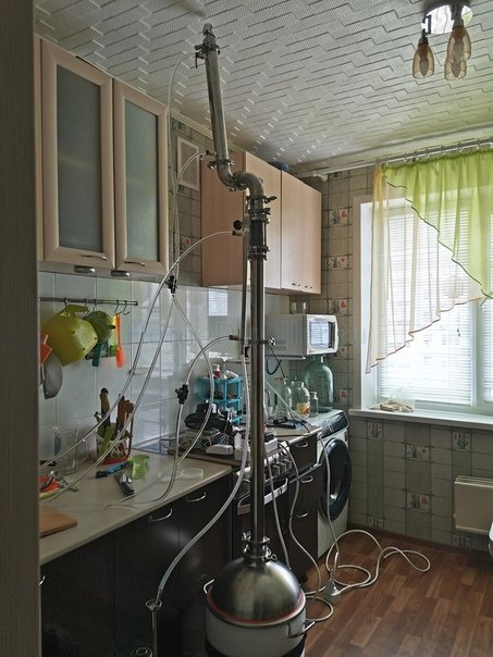 Второй погон: спирта сырца 34 литра 42°. Колонну собираю вертикально с узлом отбора по жидкости. Царга 1м 2 дюйма набита рпн, 3 медных остальные нерж. Нагрев тэном 4квт с регулятором.