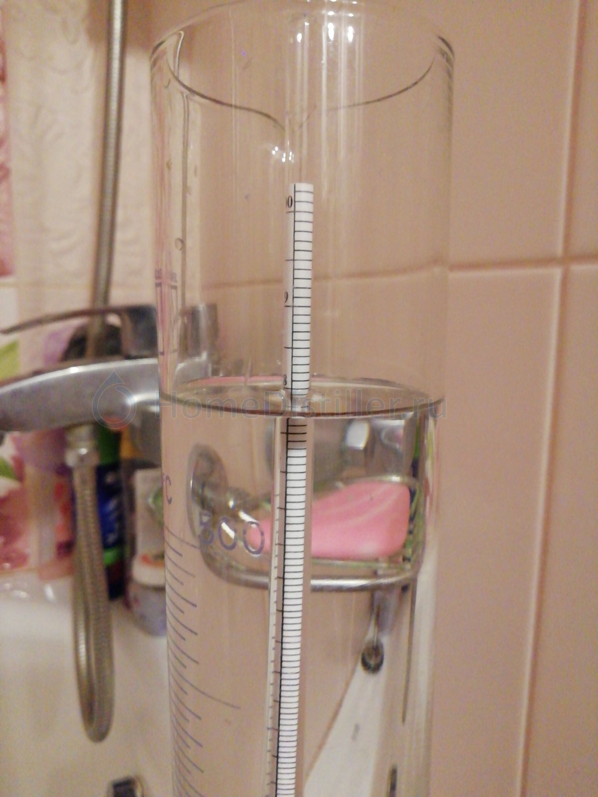 zippo75, ареометр на фото показывает 96,9%об. по верхнему мениску. Значит в реале там 96.7--96.8%об. На термометре (неповеренном!) +26°С. По кальку имеешь 95.4--95.5%об. Это не спирт.