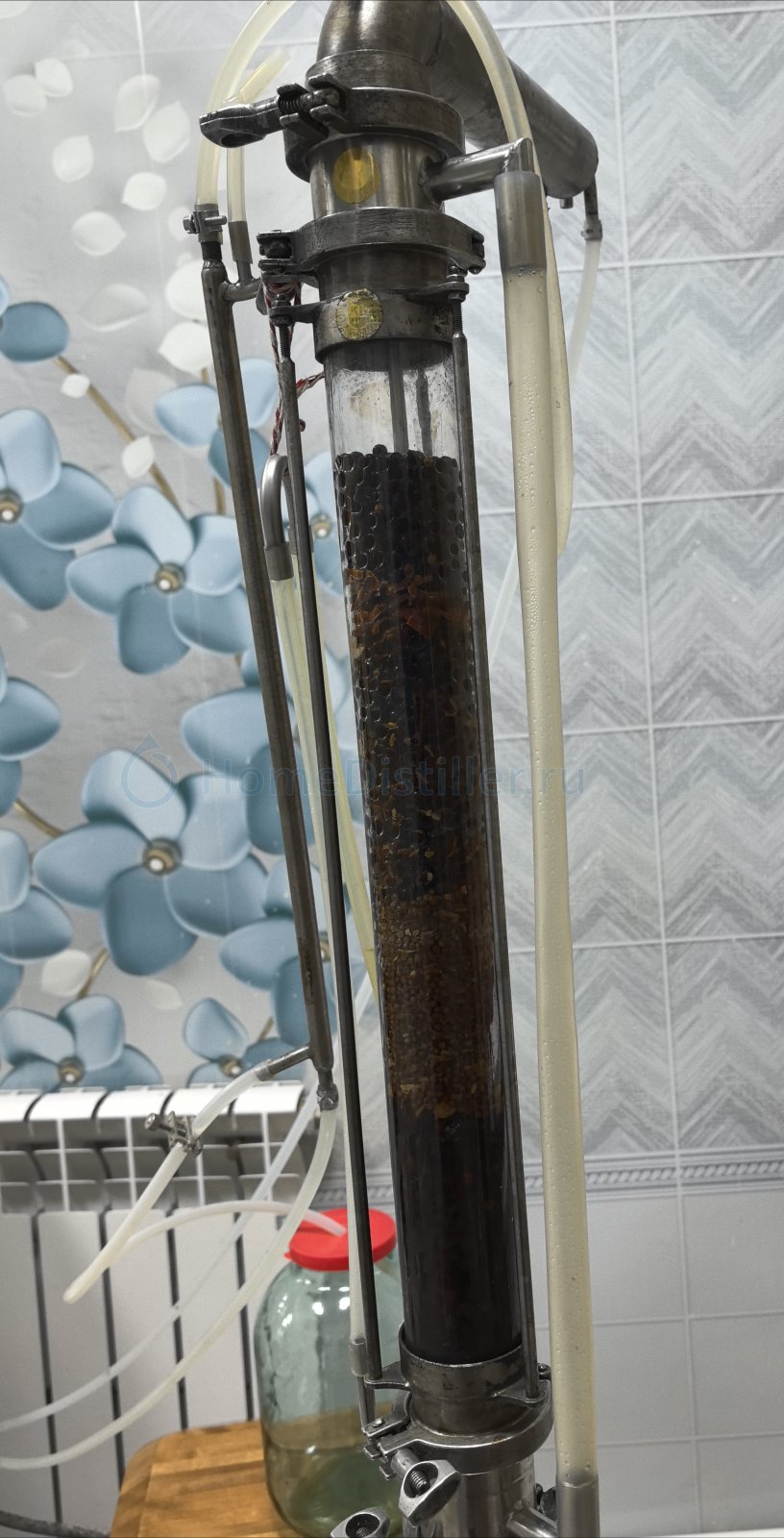 Но без РК не обойтись! Поэтому планируй царгу 1 м 3" (!!!) со штуцером под термометр, переходник 2/3", СПН 3,5 х 3,5 в царгу доверху, дефлегматор "Сфера" на 3" с выходом кламп 0,5", автоматику "домспирт" на Озоне или Вайсберриз (6,7 труб), капельник и доохладитель. Научишься получать спирт. Не скоро научишься, поэтому жене джин пока не обещай:))