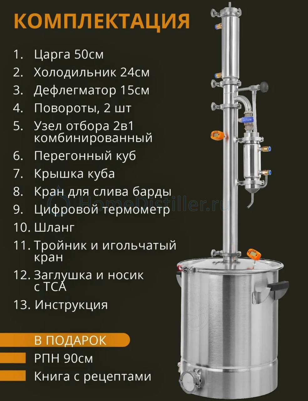 Брать обычную колонну с поворотомing050, 15 Февр. 26, 22:07Это как раз не обычная колонна а так называемая бражная, она же БКМ, с ней устанешь флегмовое число регулировать, жидкостной отбор проще. Высоту самой колонны старайся взять максимальной, в потолок. Дефлегматор такой мощный ей не очень нужен.