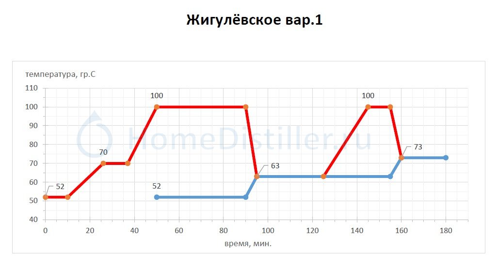 2. Получившийся гидромодуль 3,5, сохраняется (поддерживается) вплоть до мальтозной паузы (63 °С), включительно.