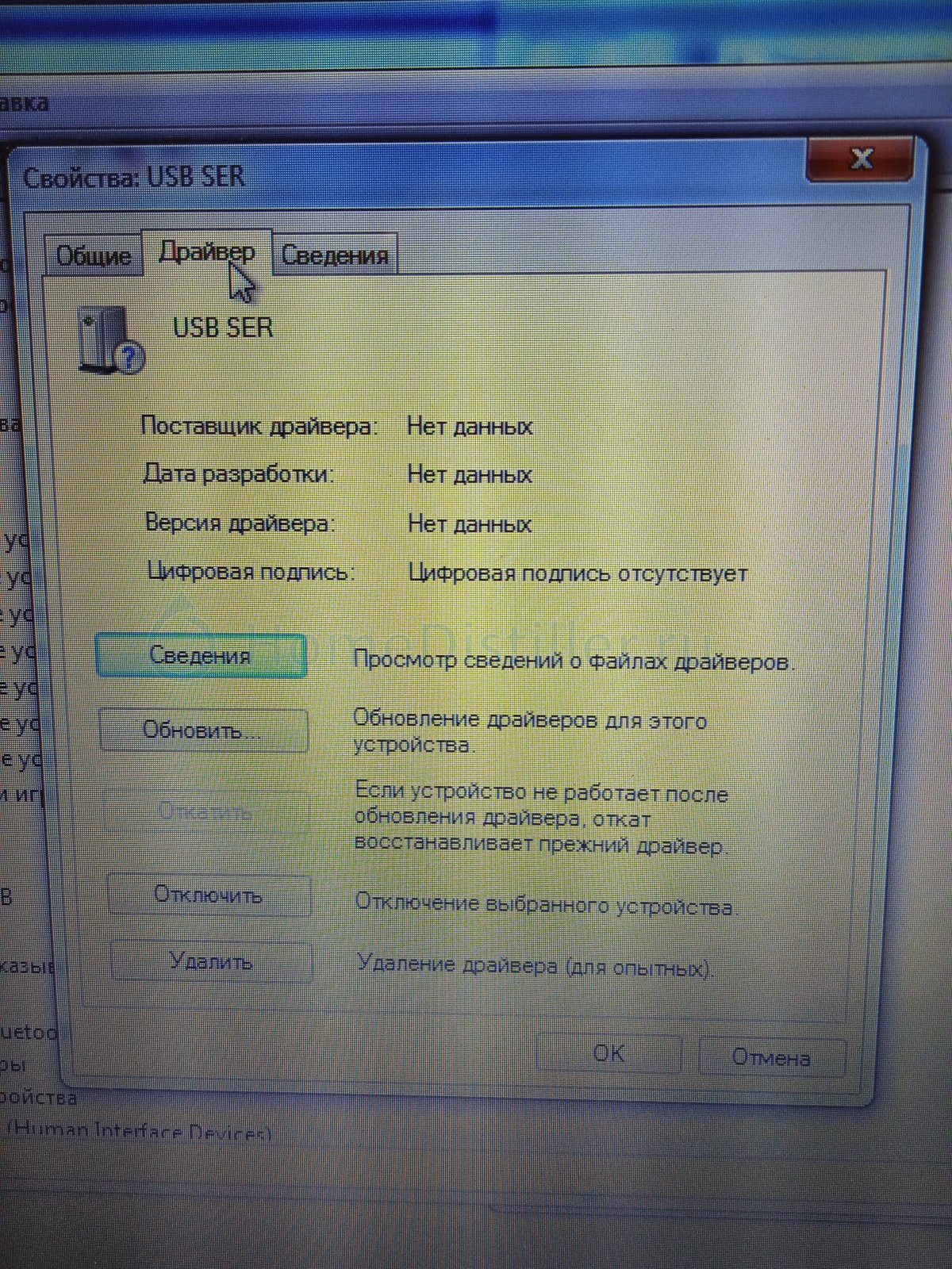 Я хоть и может и дурак, но комп чётко говорит по подключению. Либо будем работать, либо пошёл нах и ищи драйвер. Третьего не дано. 1234 раз. Диспетчер просит USB SER., Откуда он эти символы взял? Прочитал. Где? От чипа? Как? Не будь дебилом. Помоги.