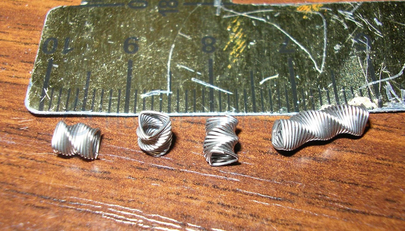 10 метров проволки при помощи шуруповерта и оправки превралились в 30 см призматической спирали, крутится довольно легко, режется тоже и бокорезами и ножницами и мясорубка тоже вроде хорошо режет но надо это резко делать и поэтому придется отдельный нож покупать и два лезвия спиливать у него и острее точить. Прилагаю фотографии длинна грани треугольника 3,3 мм длинна спирали разная, просто по быстрому почикал для фотосесси))
