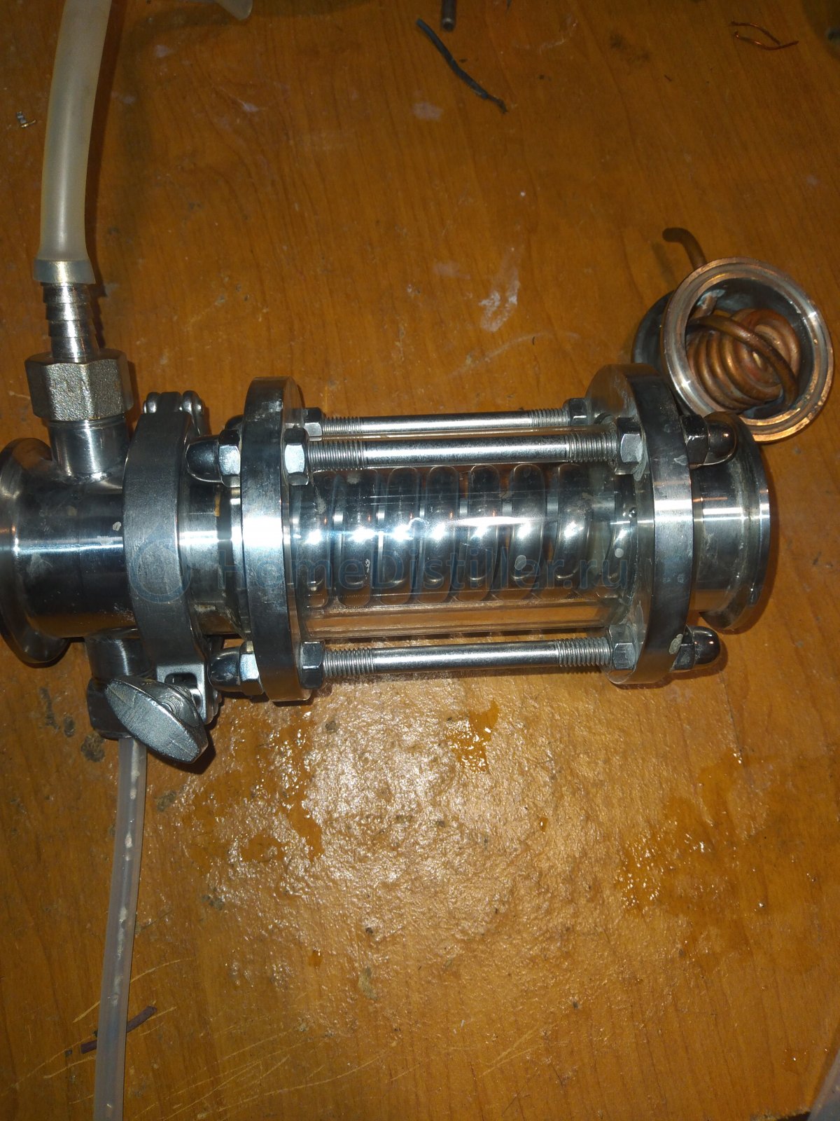 На картинки открытая колонна ,узел ввода с подогревом, слив в куб . Вот тут хитрость. Если будите отбирать эпюрат крепче ,то у вас куб с водой будет наполняться , если меньше то осушаться. Если есть слив с куба,то можно немного шланг поднять до уровня куба и слив открыть .В кубе некое давление учтите это при поднятии шланга что бы не осушить тэны.Янн, 12 Нояб. 25, 19:56