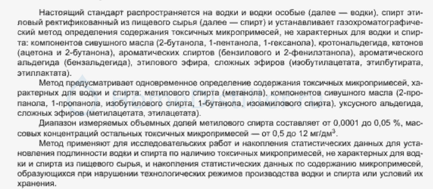 Результаты лабораторных исследований Спирта домашнего производства