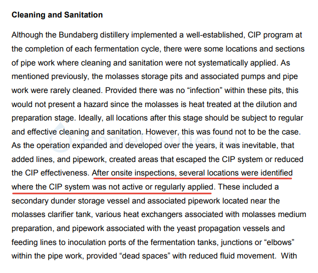 После инспекций на месте было выявлено несколько мест где система CIP не была активна или применялась нерегулярно.