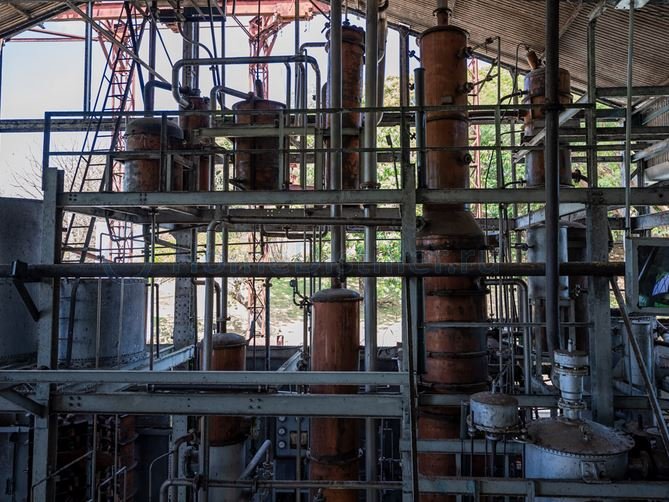 K1. Ром из тростникового сырья. Дистилляты. Рецепты напитков. Классические медные креольские колонны в Habitation Clément (Мартиника). Именно они и делают ром-агриколь.
