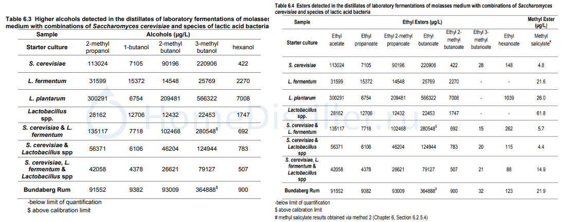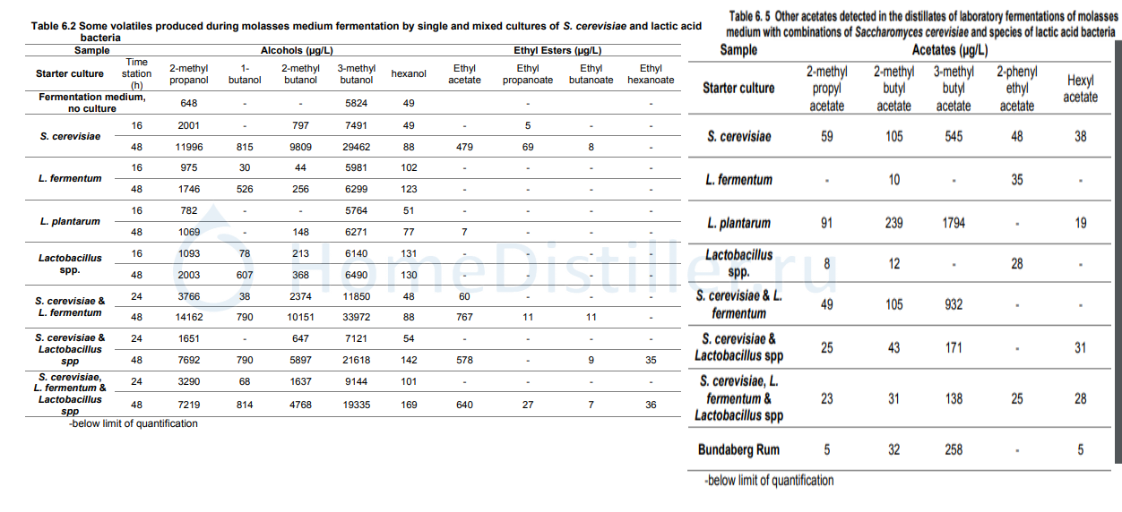 Высшие спирты, эфиры (6.2) и ацетаты (6.5) при сбраживании тростниковой мелассы разными культурами и некоторыми комбинациями. К сожалению опыты достаточн ривые т.к было сброжено только примерно половина сахаров изображение_2026-02-16_143324035. Лактобактерии и дистилляты. Теория и практика. Дистилляты. Рецепты напитков. есть еще таблицы 6.3 и 6.4 для дистиллята но в них одинаковые цифры, где-то ошибка изображение_2026-02-16_142753953. Лактобактерии и дистилляты. Теория и практика. Дистилляты. Рецепты напитков.