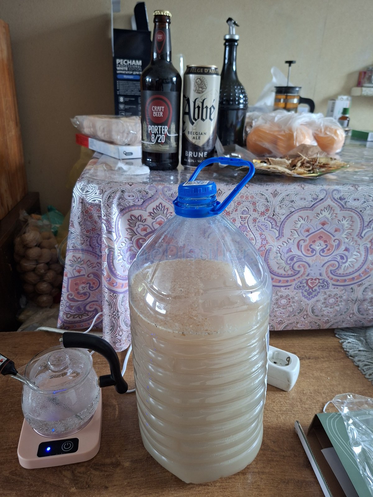 Разбавлю тему. Вот никто так не делал как сейчас расскажу. Во первых мы самогонщики со стажем. Во вторых пиво порой варим. И многие имеют пивную дробилку. Так вот нужна именно та, что зерно в хлопья давит. Если есть, то каша будет.. Берём зерна всякого по горсти. Злаков надо набрать побольше видов. Помыть основательно. В банку. Налить чутка воды. Несколько мл. Закрыть и пусть постоит ночку. Отсыреет слегонца. Потом в хлопья на дробилке. Должно получиться приблизительно 200-300 гр по сухим хлопьям.. Кастрюльку 4,5-5л. Туда воды не меньше 4 л. Кипятим. Как закипело, засыпаем хлопья. Варим при кипении минут 10-15. Пробуем периодически. Должны быть как двухдневный черный хлеб. Упругие. И без хруста. Готово. Сливаем воду в другую кастрюльку через сито. Туда кг сахара. Закипятить. Как остынет залить в 6л бутылку с под воды. Добавить кипячёной охлождённой воды до 5л. 25-30°С чтобы получилось. Накрошить 100 гр свежих пекарских дрожжей. И т.д. все знают что с ней дальше делать. С 2х банок на простом прямотоке будет 2 л хорошего самогона после дробной перегонки.👍 не увлекайтесь. Пить много вредно для здоровья. IMG_2026_02_19_12_37_32_9381176754796200202900. Каши. Домашняя кухня.