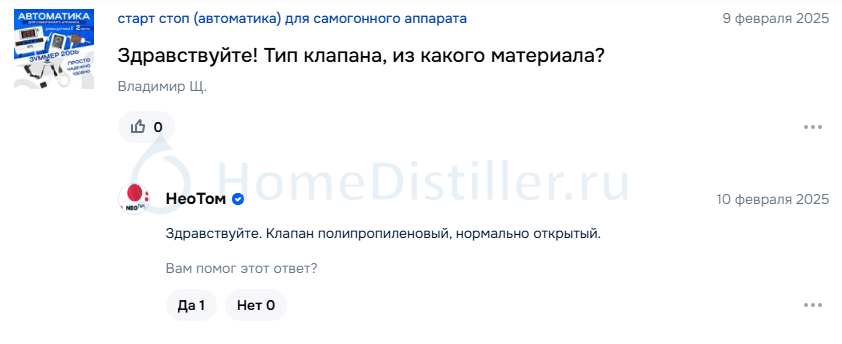 Всем доброго вечера ,посоветуйте, где приобрести простую автоматику старт стоп.Kreatorr, 19 Нояб. 25, 21:32Собери сам, ничего сложного. Дешевле получится и лучше той автоматики что ссылку дали на Озон. На том же Озон закажи отдельно клапан и терморегулятор. Вот для примера https://www.ozon.ru/...tat-2200950980/, лучше чем простой, есть звуковой сигнал. И такой клапан https://www.ozon.ru/...tyy-2053544846/ он нормально закрытый клапан и если отключат свет то хвосты не попадут в отбор. Я такие купил и нормально работают. Да, штуцеры ещё купить и всё. https://aliexpress.ru/...000013331955265