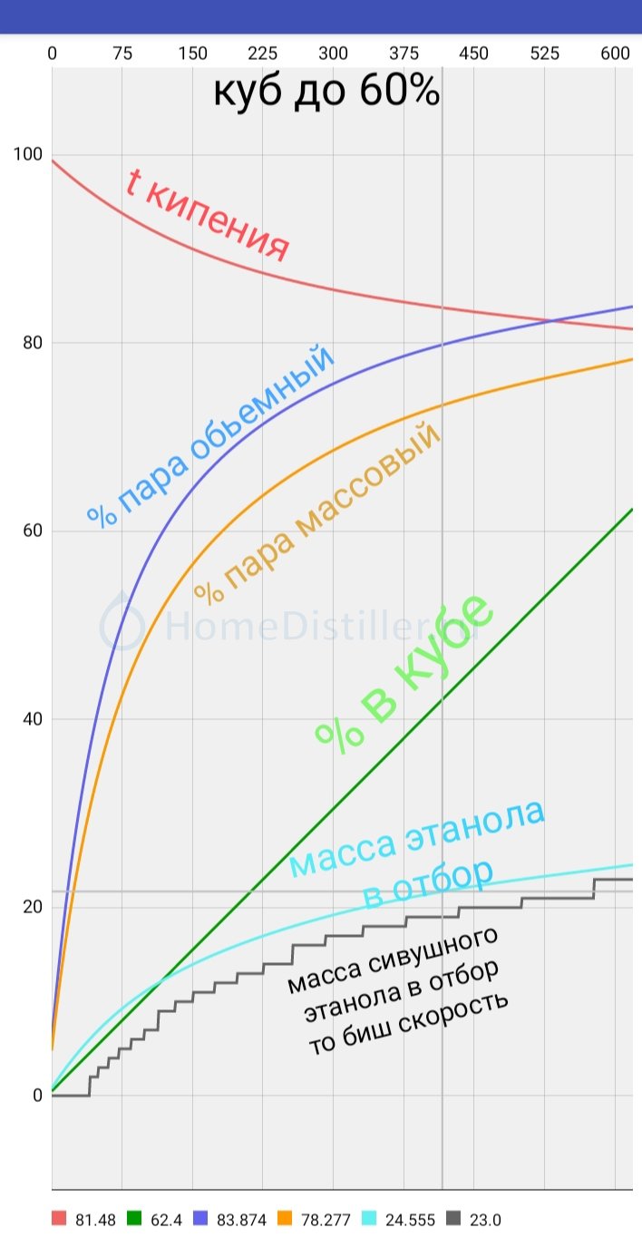 Кстати тут весёлую картинку автоматика нарисовала. Фрагмент до 60 объёмных куба. В принципе можно боле мене ориентироваться. Отбор в масштабе 10/1. То есть если 20 по шкале, то это скорость отбора 2 кг/час с кило мощи. Я, по весам гоню. Исходник кальк Руди. Правда старый. С новым есть некоторое несоответствие. Тем не менее можно распечатать и на куб приклеить. Или ещё куда. IMG_20251208_125654. Помощь начинающим самогонщикам. Советы. Вопросы самогонщиков.