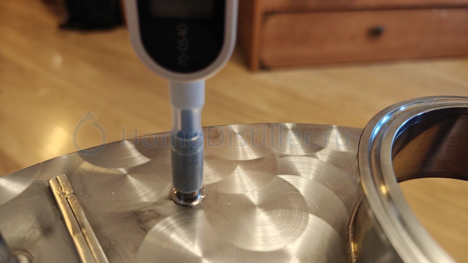 вотнуть в него через силиконовую трубку обысный термометр. Сомнения в том, что в контакте с горячим паром будет пластиковая часть термометра.Vlad_75, 28 Дек. 25, 08:02На жало термометра натягиваешь отрезок силиконовой трубки подходящего диаметра. Эта сборка плотненько входит в штуцер, отсекая путь пару.