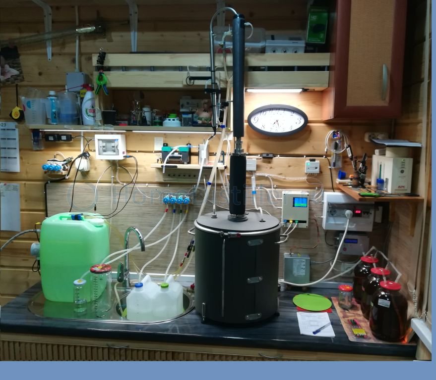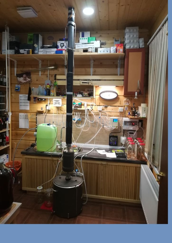 - Примерно на двадцаой минуте содержимое куба вскипает - контроллер открыв клапан Valve_G начинает отбор голов.