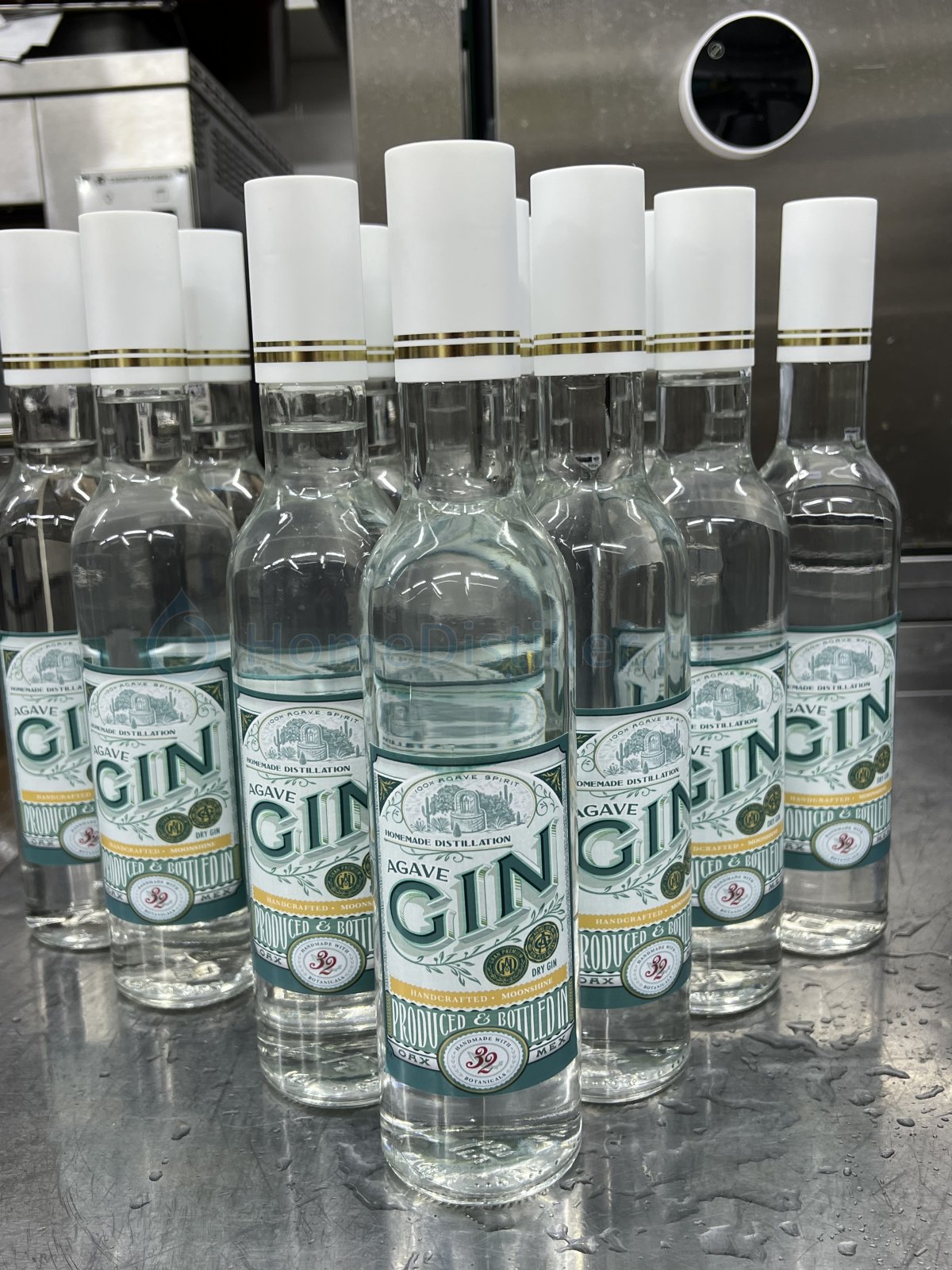 Разлил сегодня джин в водочную бутылку с колпачком дозатором. Смотрится по моему не плохо. Водочная бутылка и красивая и не дорогая.крепость джина 40 град. Джин После вакуумного погона не мутнеет, если правильно отобрать головы и отсечь вовремя хвосты. Этикетка, бутылка и колпачок с Озона.