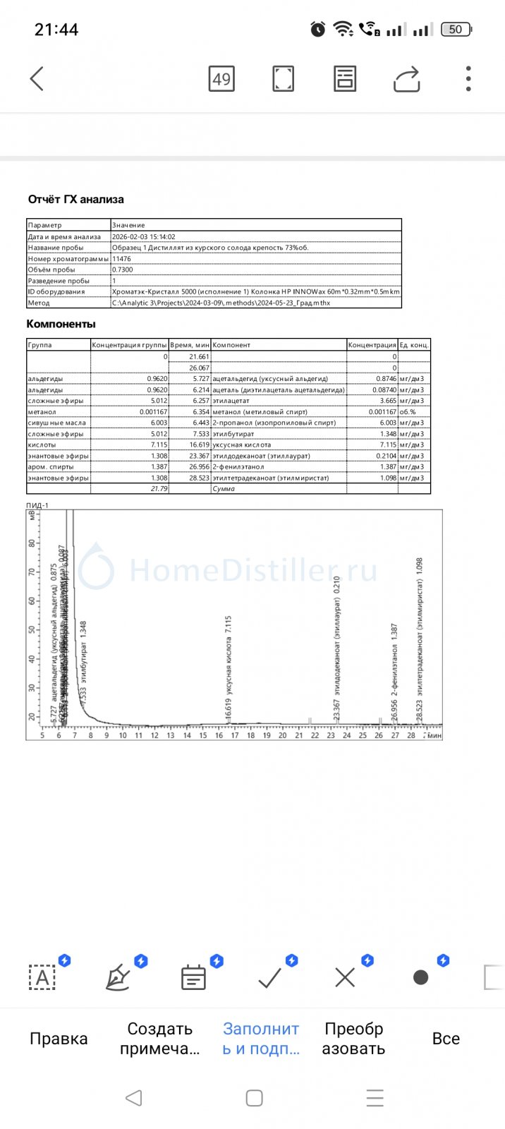 вотОлеган1981, 27 Марта 26, 21:44Во-первых нихера не видно. Во-вторых - из того, что видно, видно, что эфиров в хвостах как раз-таки дофига по сравнению с прочими примесями. А миллиграммы на литр АС "длинных" эфиров - это прямо таки явственно ощущается в продукте.