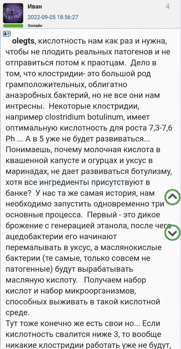 годится ли для избежания заражения браги патогеном типа клосуидий, внесение молочнокислых бактерий в зерновую брагу типа йогуртовых?Олеган1981, Вчера, 00:07Идея бесперспективная. Подавляющее большинство зернового сырца и дистиллятов не имеют признаков заражения клостридиями, никто специально их не подавляет другими микробами (МКБ).
