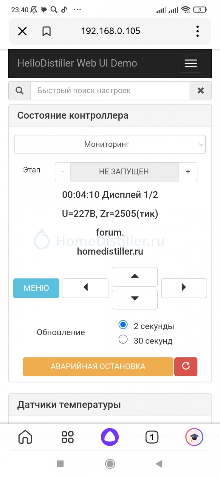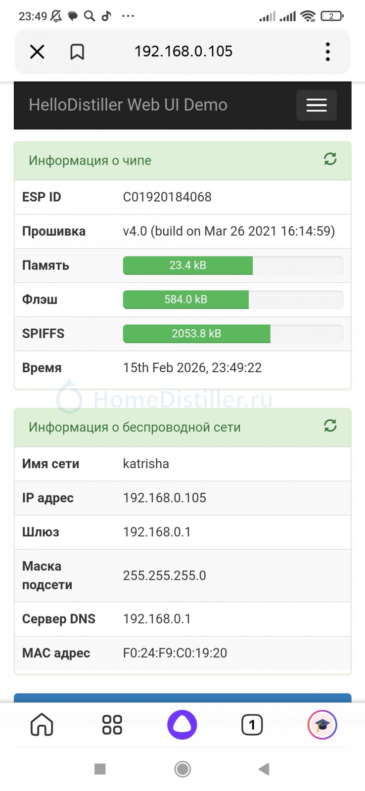 WEB интерфейс к HelloDistiller на ESP8266