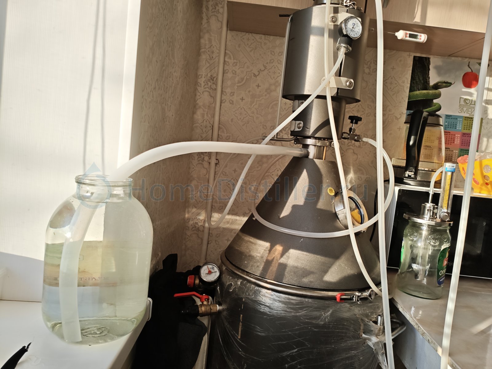 Подрывной клапан вещь, конечно, нужная...Но паровая (спиртовая)баня в маленьком помещении (кухня в Хрущёвке) заставляет почесать левое яичко правой рукой... IMG_20251103_160625. Маленькие хитрости. Элементы оборудования. Шланг в воде (вместо подрывного)позволяет избежать бабаха...(Оно же манометр) 20 см/воды - примерно 15мм/рт/столба..