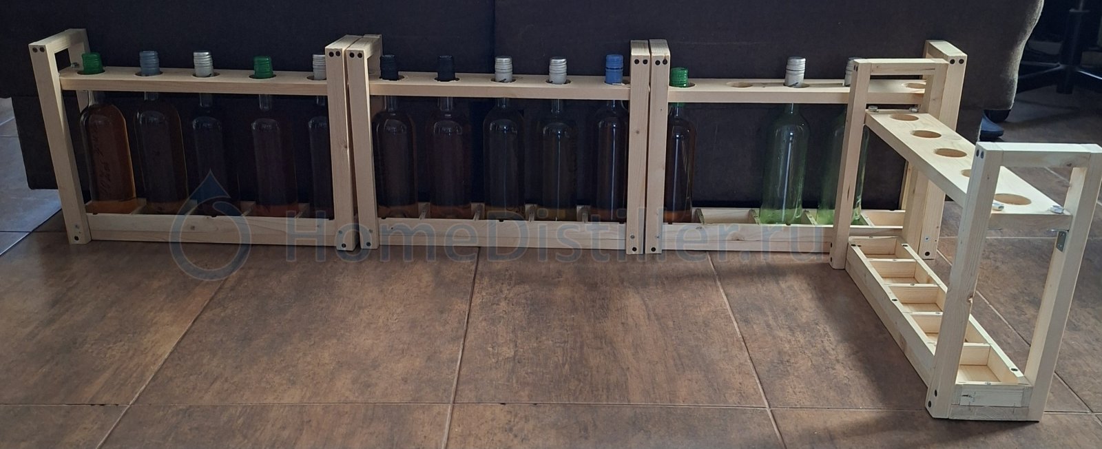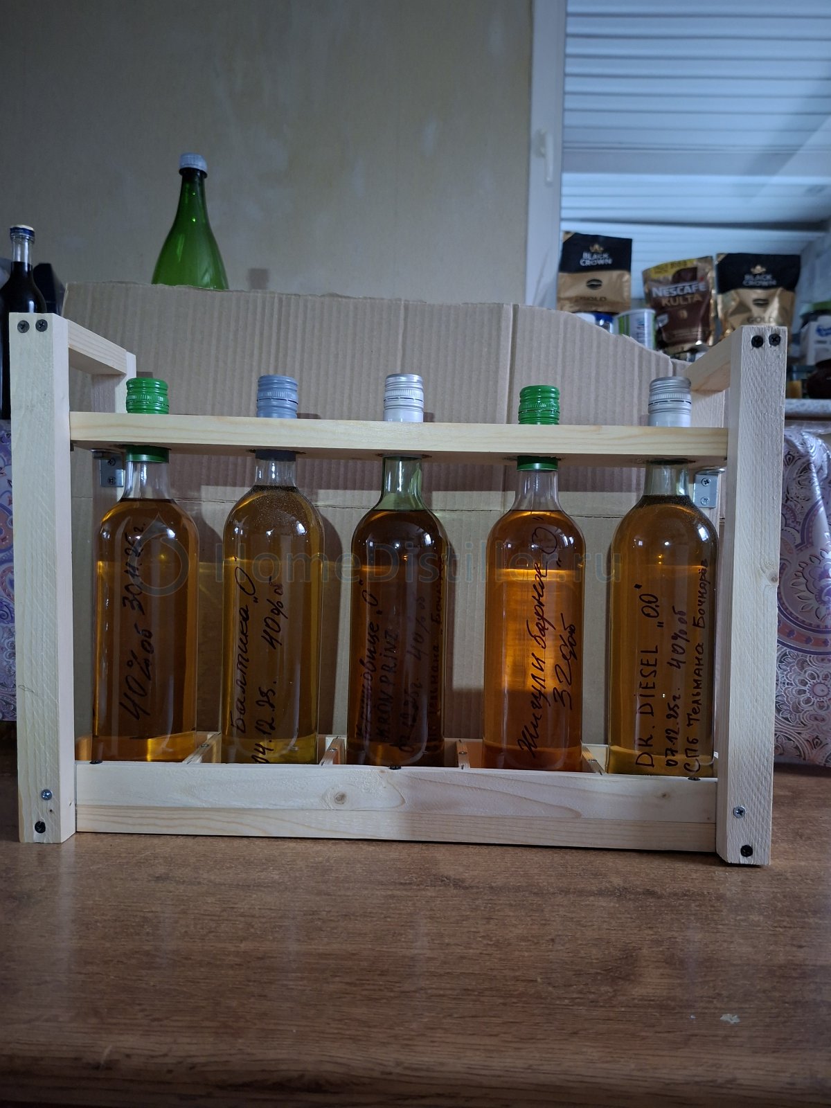 Сделал 4 ящика для хранения по 5 винных бутылок. В которых можно наблюдать за тем как изменяется жидкость. Осадок, прозрачность и прочие параметры. Бутылки не двигаются. Можно крутить за горлышко. Вести дневник телодвижений привязываясь к месту. В общем удобная штука. В один ряд чтобы можно было подсветить фонарём сзади. Винная удобна тем чтобы после деконтации, фильтрации и т.д. осталось на 0,5 л. Или с трёх на 4 по 0,5. Буду делать что то типа водок особых. С разными вкусами и ароматами. 20251230_130620. Маленькие хитрости. Элементы оборудования.20251230_130425. Маленькие хитрости. Элементы оборудования.20260101_121231. Маленькие хитрости. Элементы оборудования. 20260101_121254. Маленькие хитрости. Элементы оборудования.