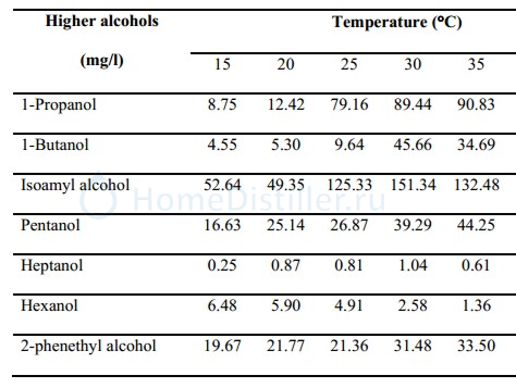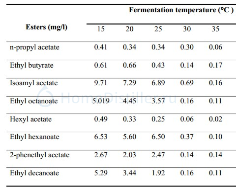 та хрен с ней эффективностью брожения, тут дело в примесях, образование ВС и эфиров зависит от температуры и расы, вот например