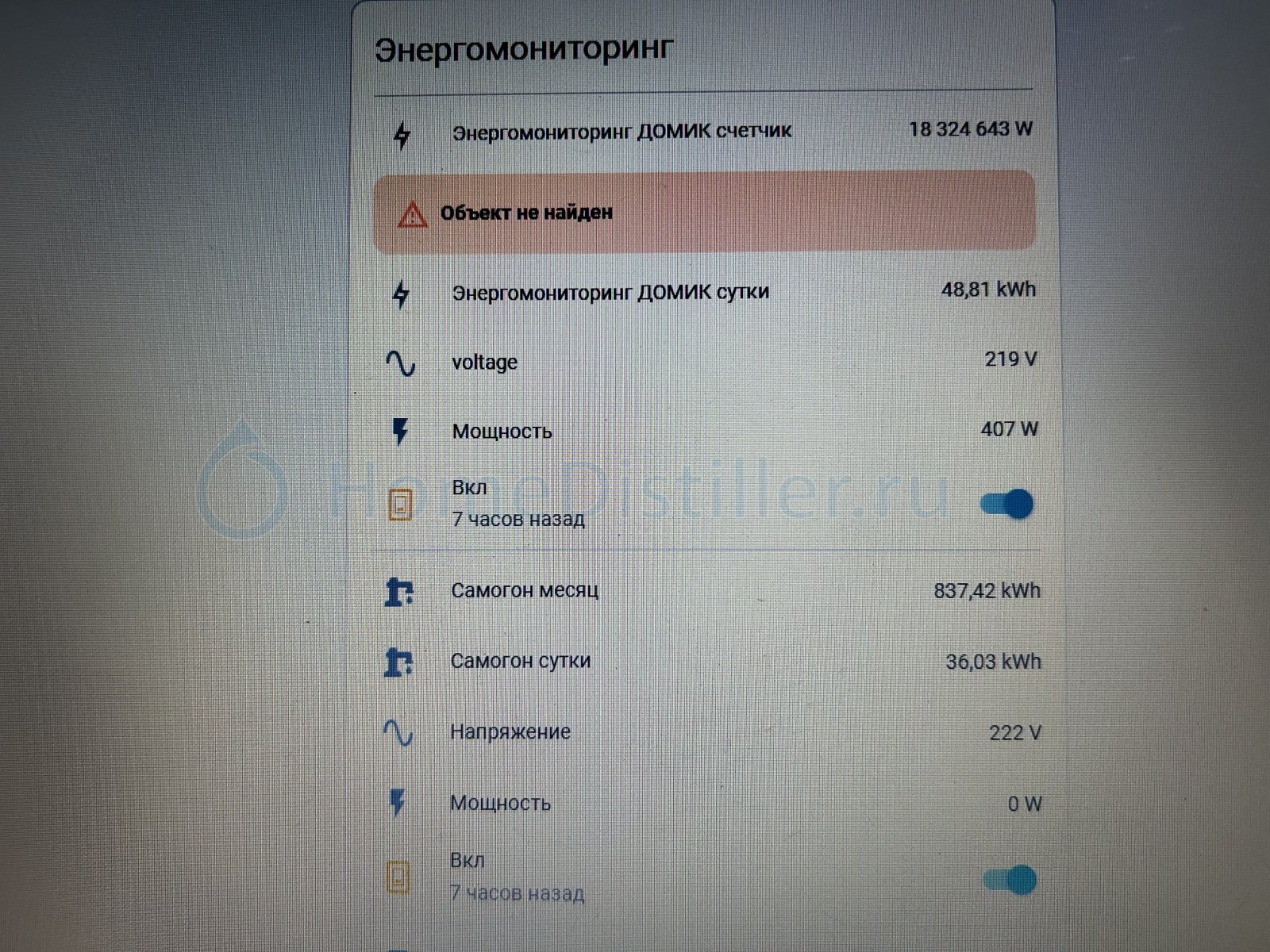 У меня SEM-avr . такие показания из HOMEASSISTANT без включение самовара и с включенным самоваром. Вход в дом через стабилизатор. Показания ДОМИК ДО СТАБИЛИЦАТОРА. Может это изза ограничения ? Поставили счетчики на столб. Както ограничивают?