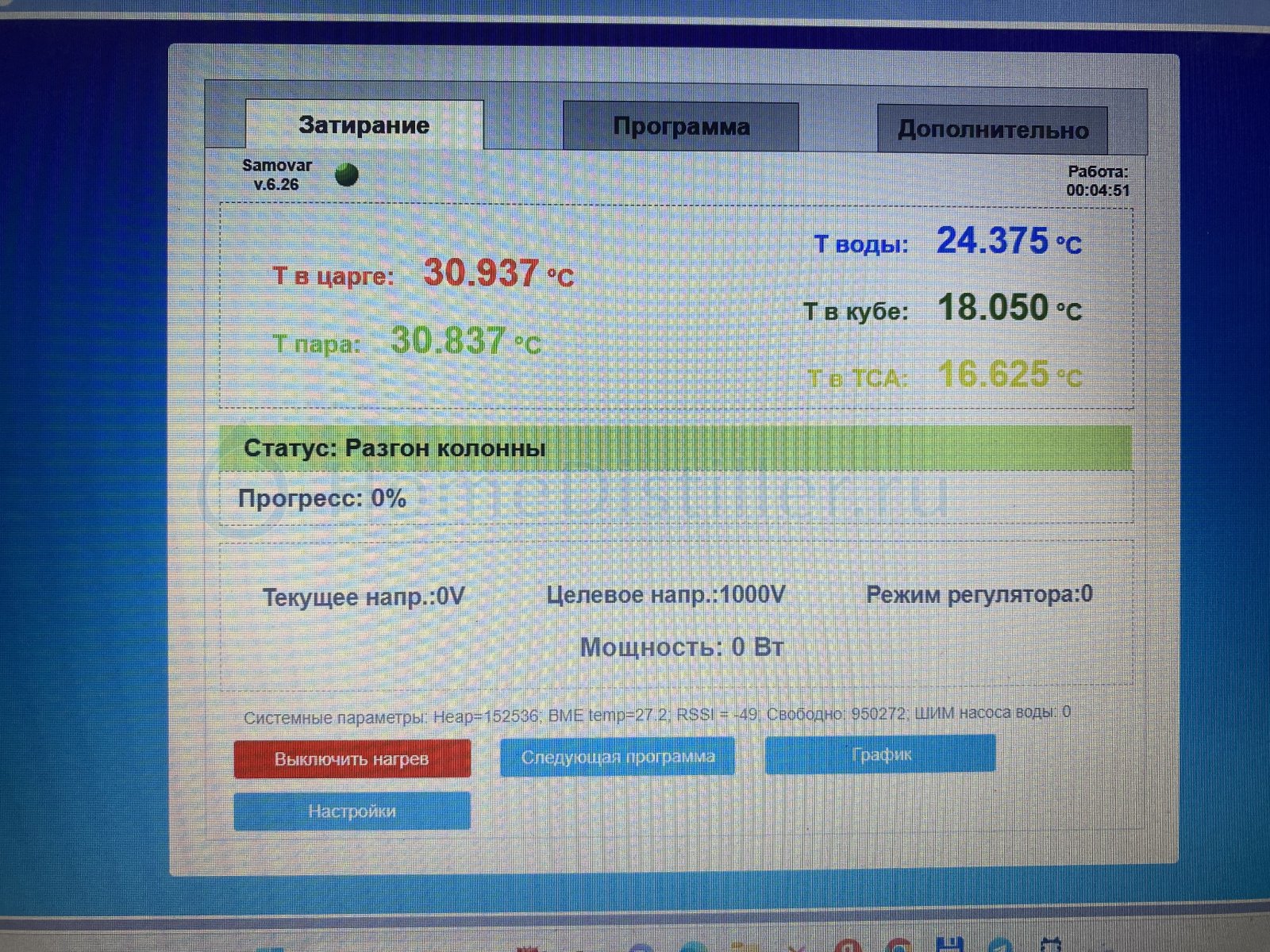 Переключитесь из режима Пиво в режим ректификация или дистилляция и попробуйте напряжение установить руками. В режиме Пиво есть свои особенности работы с регулятором, которые усложняют диагностику проблемы.lkosoj, 12 Дек. 25, 17:43