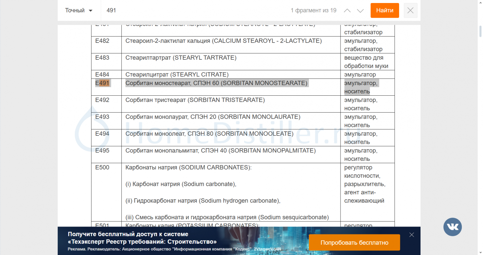 ИИ говорит, что Е491 эмульгаторВиктрыч, 19 Янв. 26, 22:18Если неохота связываться с ИИ, то есть документ - Технический регламент Таможенного союза ТР ТС 029/2012 Требования безопасности пищевых добавок, ароматизаторов и технологических вспомогательных средств.