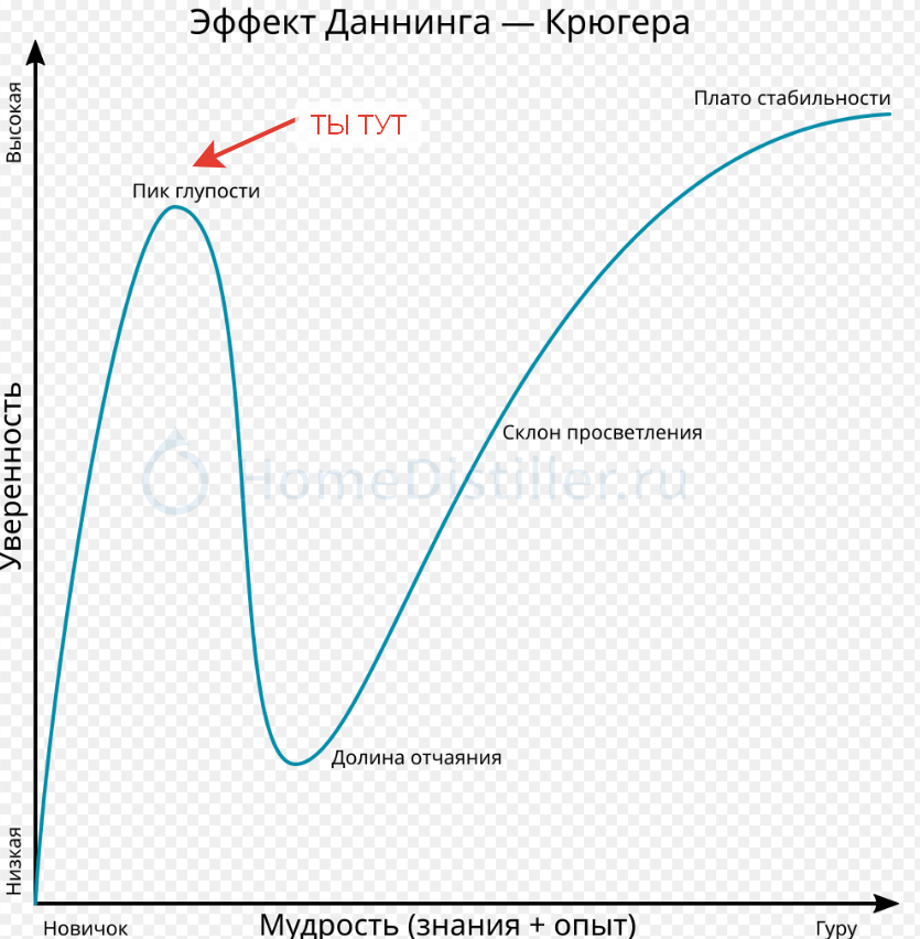Кот Бегемот, не переживай, даже если это и отчаяние (нет) на кривой Даннига-Крюгера она находится сильно правее пика глупости. Единственное в чем можно отчаяться на форуме так это в попытках вбить в головы неофитов еще немного здравого смысла.