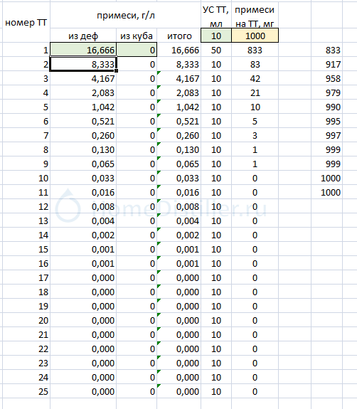 вот второй случай, о котором пытался говорить бегемот но не смог, УС насадки 1мл/ТТ, под дефом 500гр/л, для 99,9% нужно отобрать теже 10ТТ но их общая УС 10мл, средняя концентрация примеси 100гр/лdee, 22 Окт. 25, 09:15
