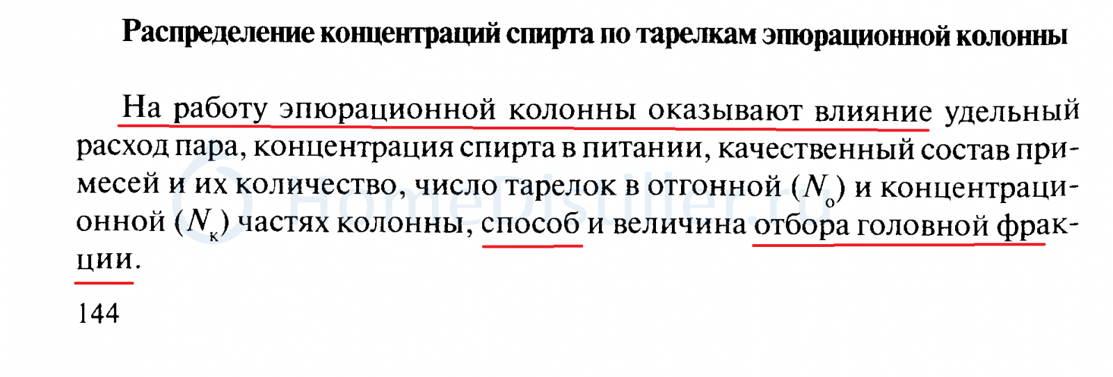 А с верхней тарелки разводят или с питающей зависит от необходимости в гидроселекции. Основное это низкоспиртуозная отгонная часть. Повторюсь, лишь с первого взгляда кажется, что экономически схема не эффективна. И тем не менее, для оптимизации выделения и концентрирования ЭАФ, в Промышленности работают именно с низкоспиртуозной флегмой.