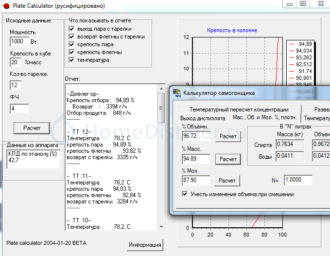 96,6 % . Даже с учетом 5 распределителей высота колонны будет в районе 1,4 метра . Как видим производительность у 3" на СПН 2 ,при задонной спиртуозности будет даже выше чем у ЭМУ колонне 2" на СПН 4.