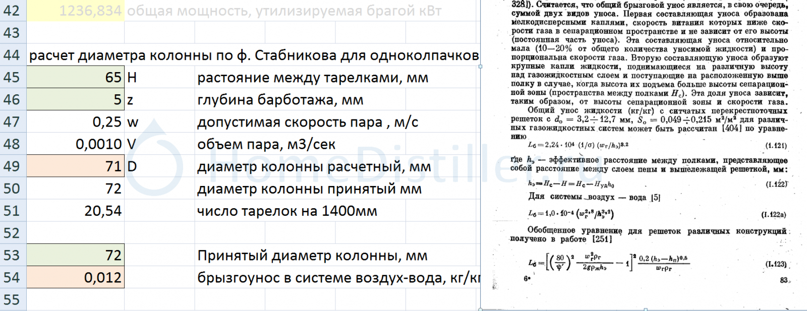 Ещё раз на подуматьЯнн, Сегодня, 12:40на подумать у меня есть расчет в экселе для сепарационного пространства над тарелкой по двум методикам, брызгоунос называется