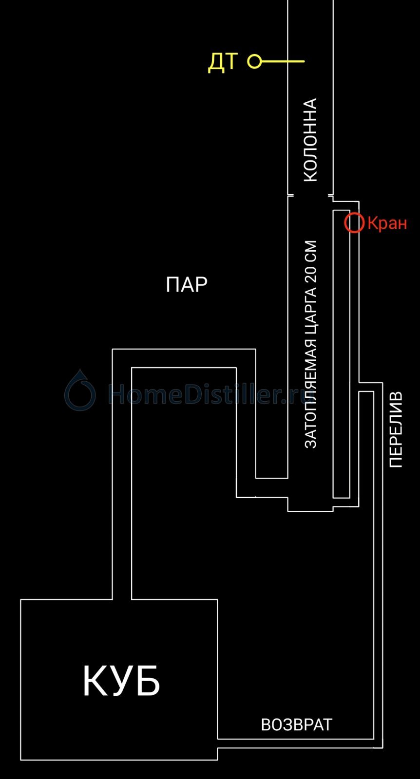 Только слив сверху опустить до низа колонны и ввести чуть выше перелива.