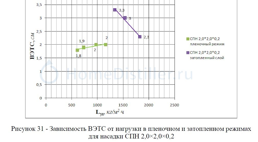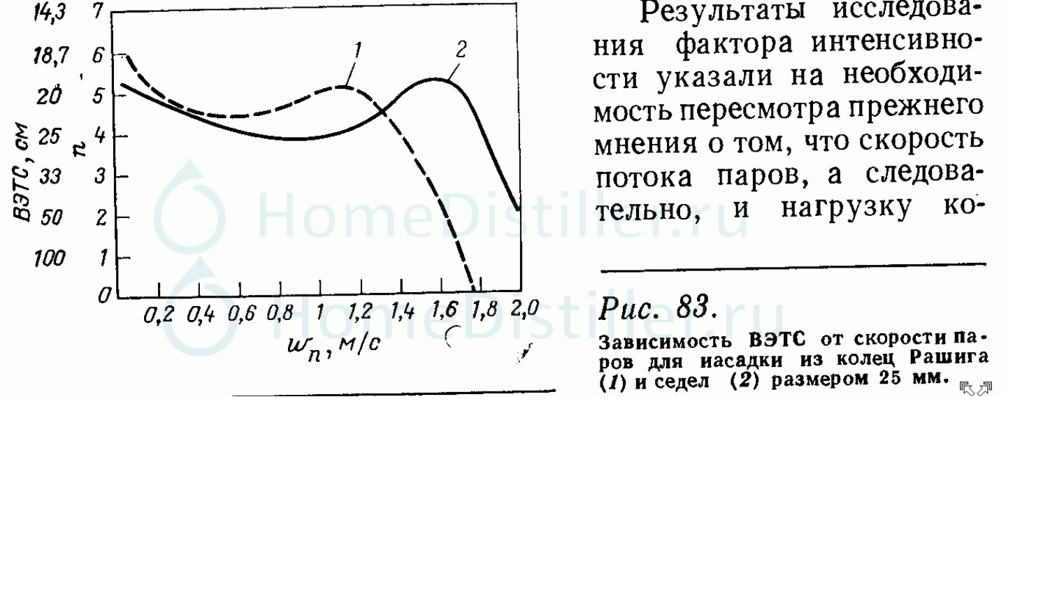Круто: скорость пара меняется от 0,2 до 1,8 (в 9 раз), а ВЭТС (для 2-ой насадки) только от 20 до 25 (в 1,25 раза). Как быть с твоим утверждением, что при изменении флегмового числа с 4-х до бесконечности ( отбор меняется всего лишь от 20% до 0% от пара), ВЭТС уменьшается на порядок?