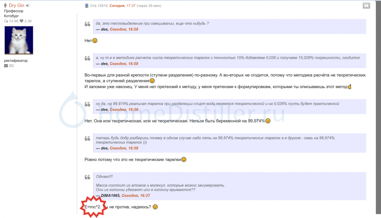 Никак. Был вопрос - был ответ.Dry Gin, Вчера, 18:47если никак то что ты ответил ? ладно, раз уравнение Энштейна к тепло-массо-обмену но с поглощением тепла - никак, вернемся к нашим баранам, т.е к не пониманию теоретических тарелок