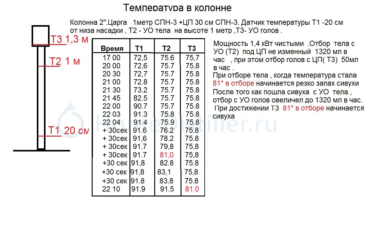 Проведи свои замеры ,вот и сравним. Данные по температуре в колонне скинул .