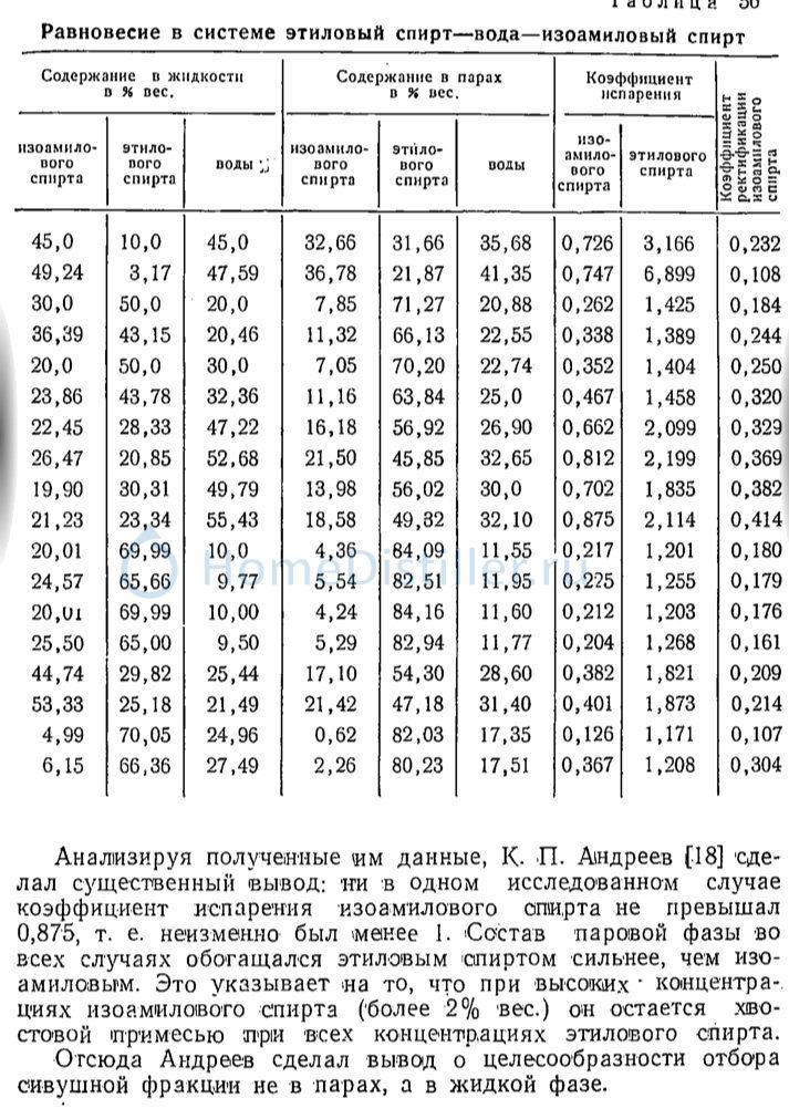 Сергей ,я уж подумал что ты сдался ,а нет 🙂. Чего тут митингуете ? Вы согласны или не согласны с выводами Стабникова -Андреева ,о том что при концентрации изоамилола в спирте 2% масс изоамиол при всех концентрациях этанола становиться хвостовой примесью ?