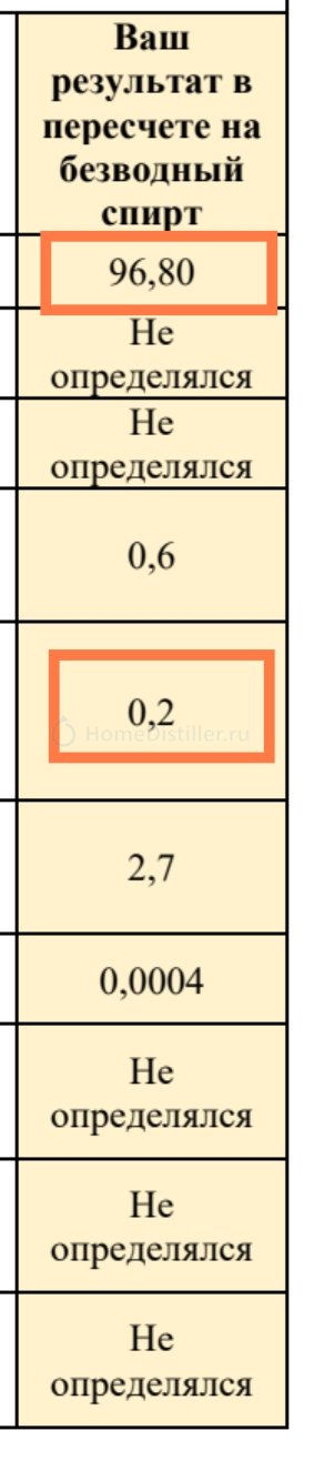 96.8 - крепость, 0.2 - изоамилол.
