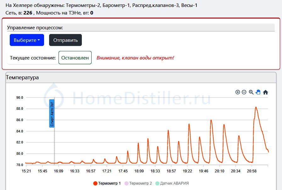 Автоматика, по желанию винокура, позволяет самостоятельно обновлять программное обеспечение совершенно бесплатно и работает как удалённо, через Интернет, так и с базового блока Хелпер Wi-Fi..