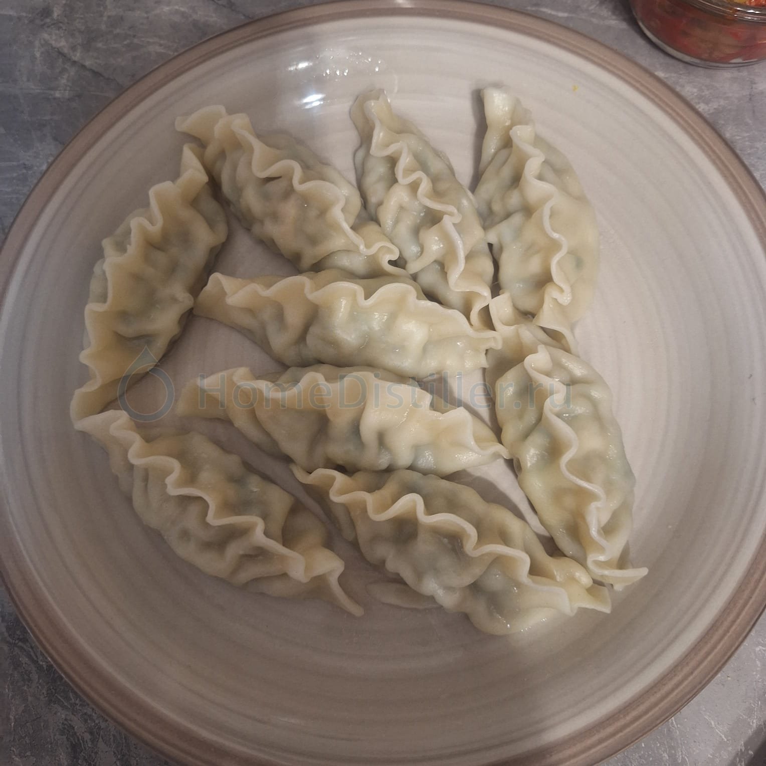 1. На вид похоже на хинкали, но хвостик маловат. Время варки 20 минут. Из-за символического размера хвостика не понятно как есть, в руке не удержать, целиком в пот не лезет. фарш довольно удачно приправлен, но может быть чутка пересолен. Бульон внутри вкусный. Тесто на удивление очень тонкое. но не вкусное.