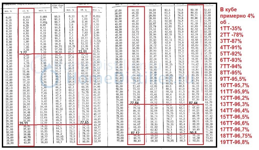СМР, вопрос только в мелочах, а конкретно, в удержании 0. Хрен большой в разнице по КРЕТу примесей и Спирта.Таблицу перепечатывать нет смысла, мы все её наизусть знаем.