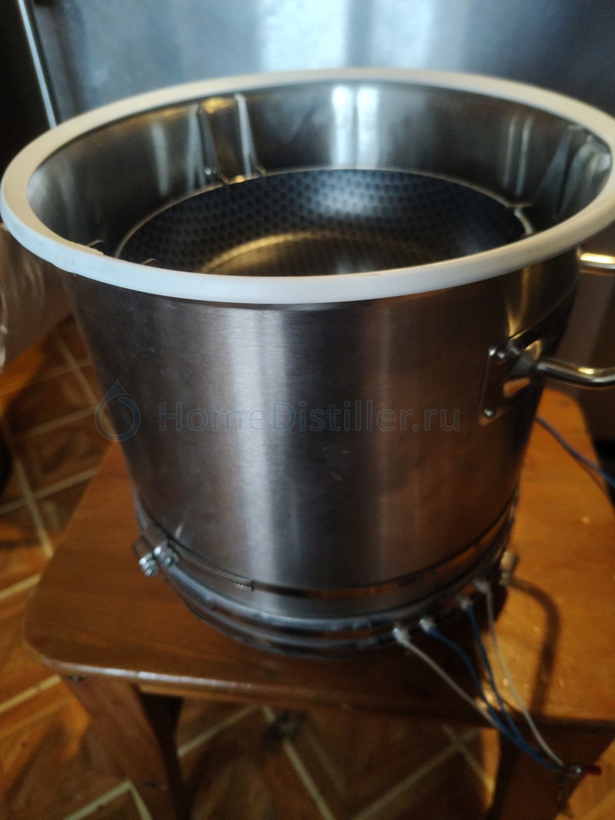 ... imho, было бы идеально сделать крепёж сковородки/поддона съёмным, ну и выбирать его при покупке как дополнительный модуль. К каждому диаметру куба - свой размер крепления. Или по аналогии с скороваркой - ставить на дно куба на ножках. Только длина кабеля до клампа у всех разная будет.