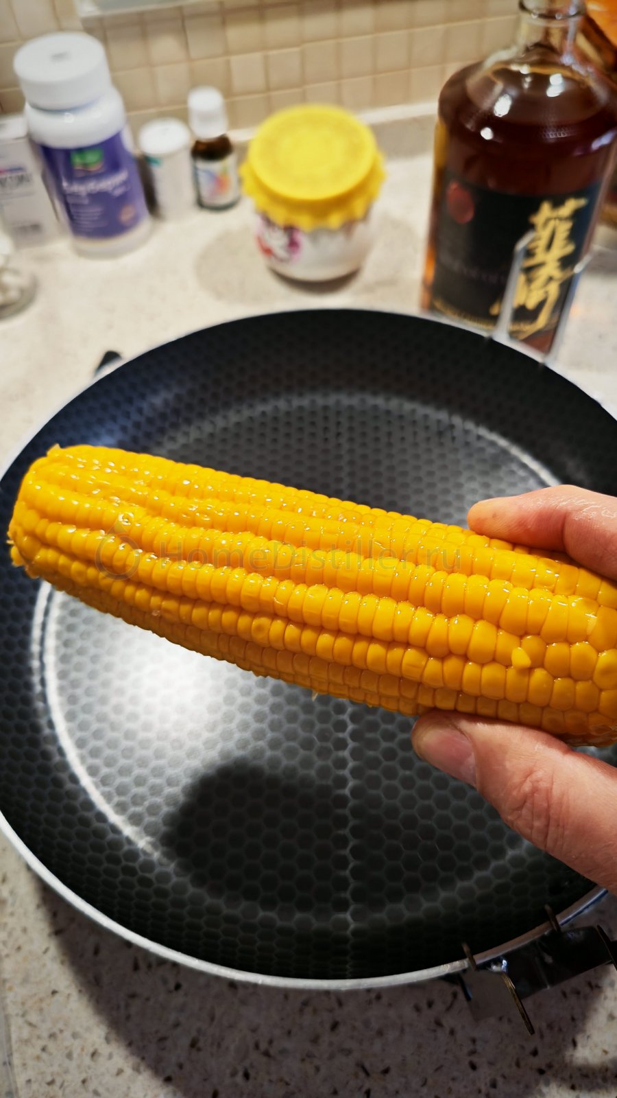 В поддон кукурузу и 150мл сортировки (воды), остальное в куб 15кПа, 55С поддон. Первый раз поторопился - остановил процесс, когда поддон был почти сухой, такая гибкая корочка на нем. В принципе вода уже прилично пахла кукурузой, прям ням-ням, но на поддоне тоже пахло приятно.