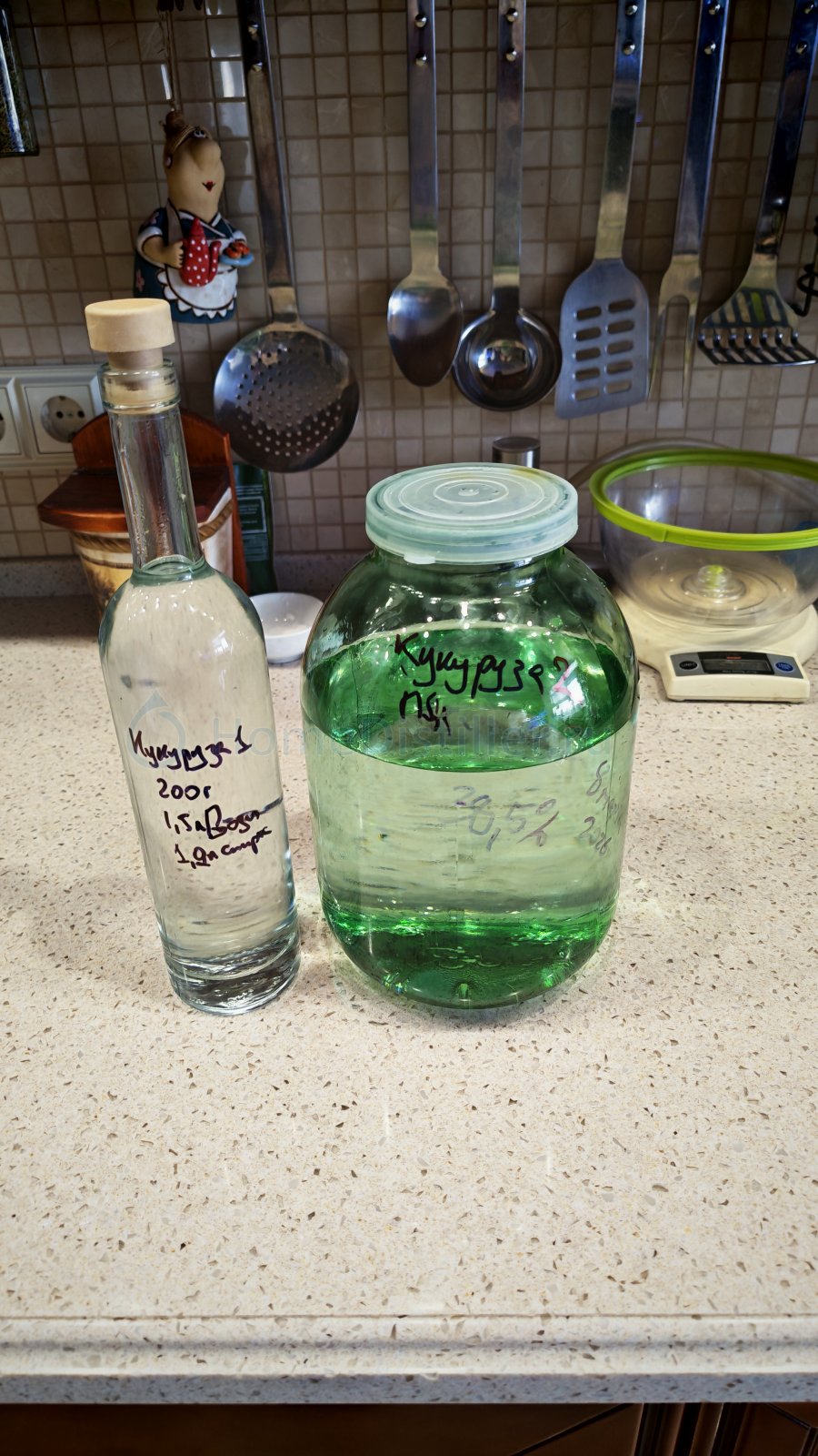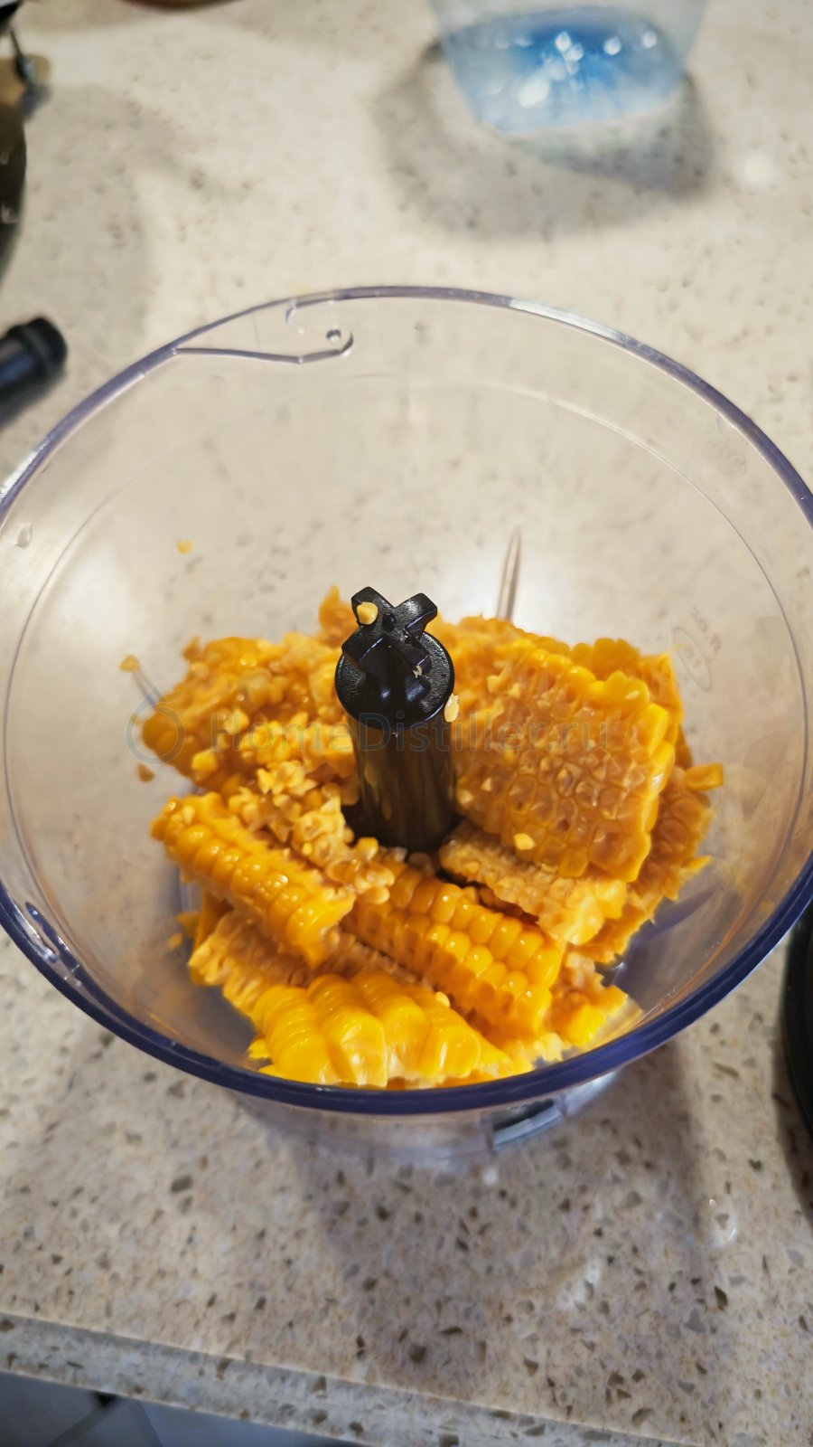 Итак, 200 грамм вареной кукурузы срезал с кочана, измельчил в блендере. На литр спирта и полторы воды. Замечание. Спирт забыл залить в поддон, поэтому абсорбентом была H-2-O, но процессу это не помешало ни разу) потом уже разбавил спиртом.