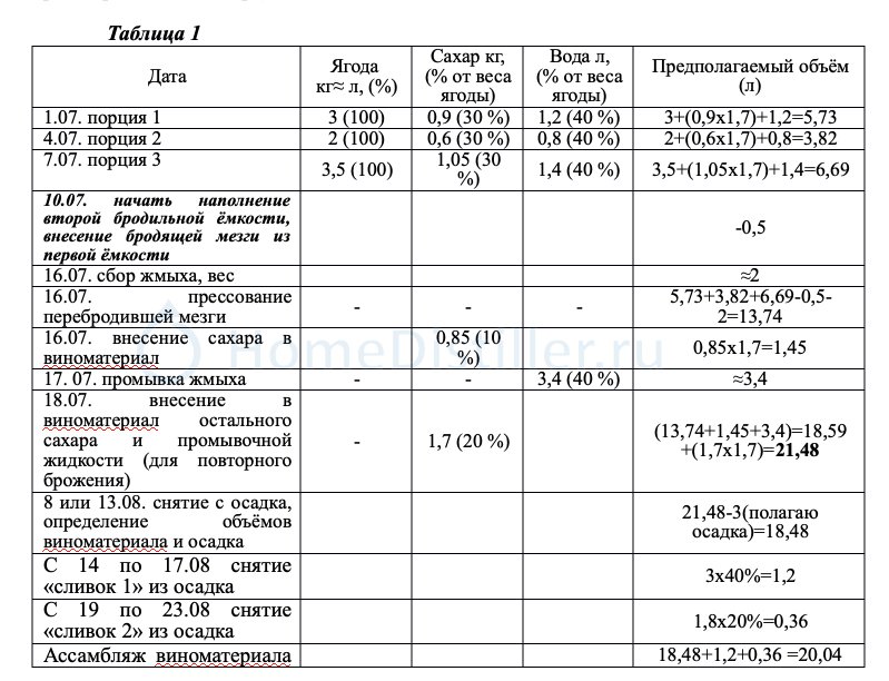 Для фиксации сроков проведённых манипуляций, и о количестве внесённых ингредиентов, создать и заполнять примерную таблицу по мере внесения компонентов. Такие таблицы поместить в грипперы, прикрепив к каждой бродильной ёмкости. Эти записи вести в качестве протокола выполненных работ, а также особенности, замеченные в процессе, вкусовые ощущения, возможные корректировки и пожелания в рецепт. Такие протоколы вести всё время до опорожнения последней бутылки напитка.
