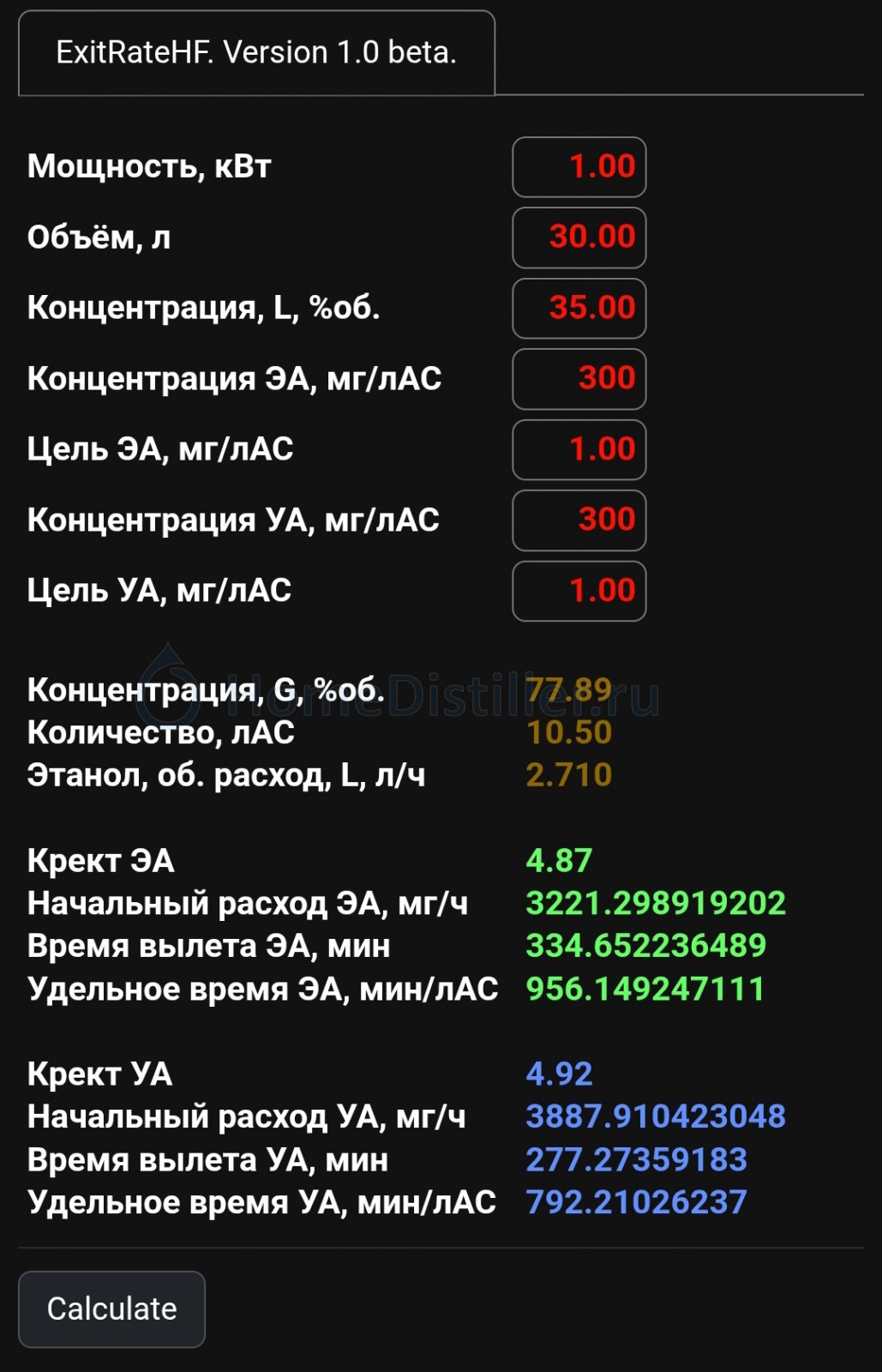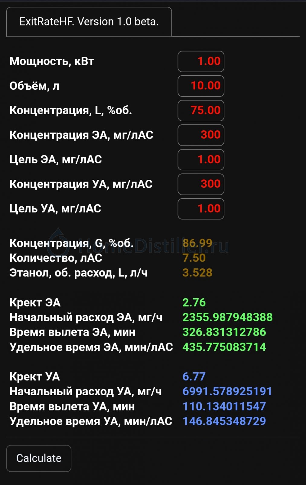 Тестируем мой калькулятор. Screenshot_2026-03-19-13-19-30-347_com. Расчет скорости выхода примеси из куба и распределение по тарелкам. Вопросы ректификаторов. ExitRateHF. Version 1.0 beta. Appizy умер. Теперь просто в экселе: [сообщение #14180702]