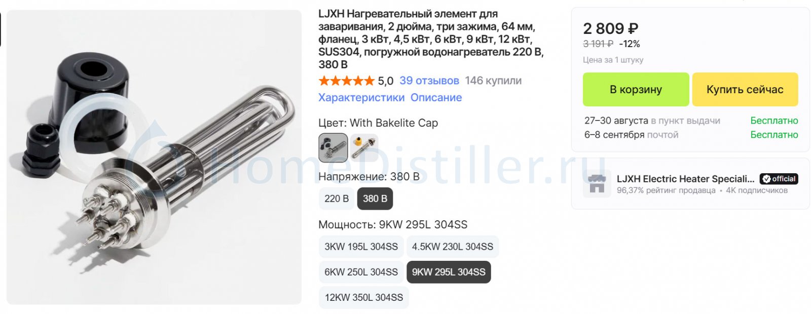 Написал продавцу. В итоге он сказал: сделаем тэн такой какой нужно. К концу августа должен получить. В рублях 3400sblack, 13 Авг. 25, 13:52Круто, это ТЭН 9х3=27кВт на 220В? (то есть сборка из 3-х ТЭНов по 9кВт каждый)?
